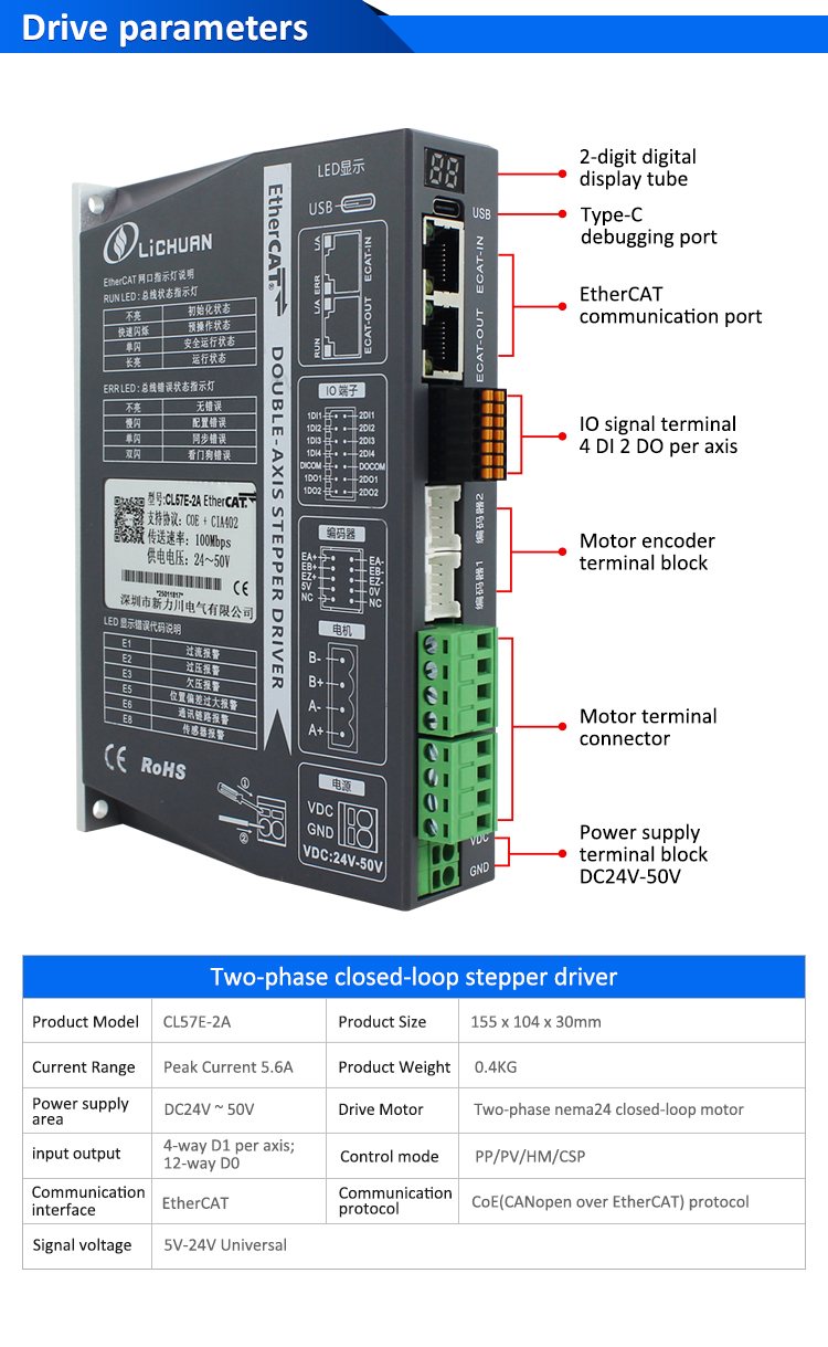 신제품 EtherCAT 2Phase Nema24 2축 DC 폐쇄 루프 스테퍼 모터 드라이버 키트는 LICHUAN®의 CE/ROHS를 통해 중국에서 제작되었습니다. 저희 공장은 중국의 유명한 EtherCAT 2Phase Nema24 2축 DC 폐쇄 루프 스테퍼 모터 드라이버 키트 제조업체 및 공급업체입니다. 우리의 제품은 고품질/내구성/안정적인 작동과 저렴한 가격입니다. 그리고 맞춤형 서비스를 제공합니다.