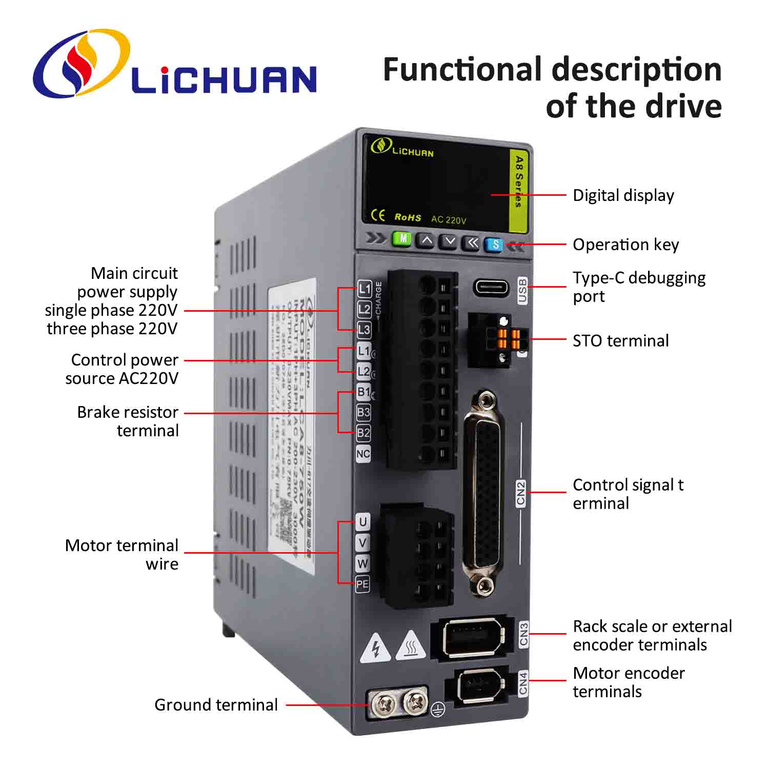 Lichuan A8 고정밀 STO ABZ AC 서보 모터 드라이버 키트 - CNC, 로봇 공학, 자동화 시스템을 위한 정밀 모션 제어