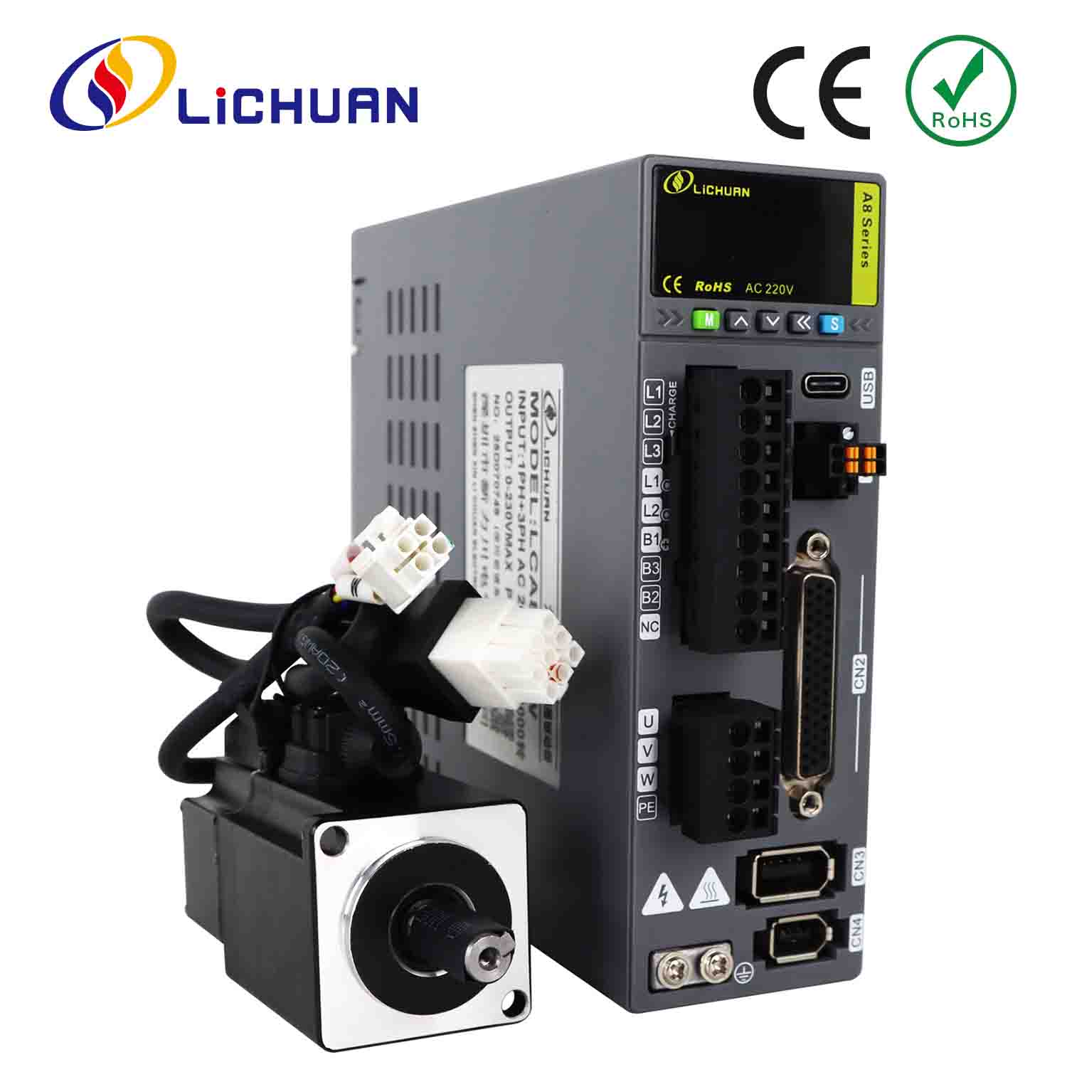 Lichuan AC 서보 모터 드라이버 키트 A8 고정밀 STO ABZ 200W 0.637N.m 220V 1.6A 3000RPM IP65